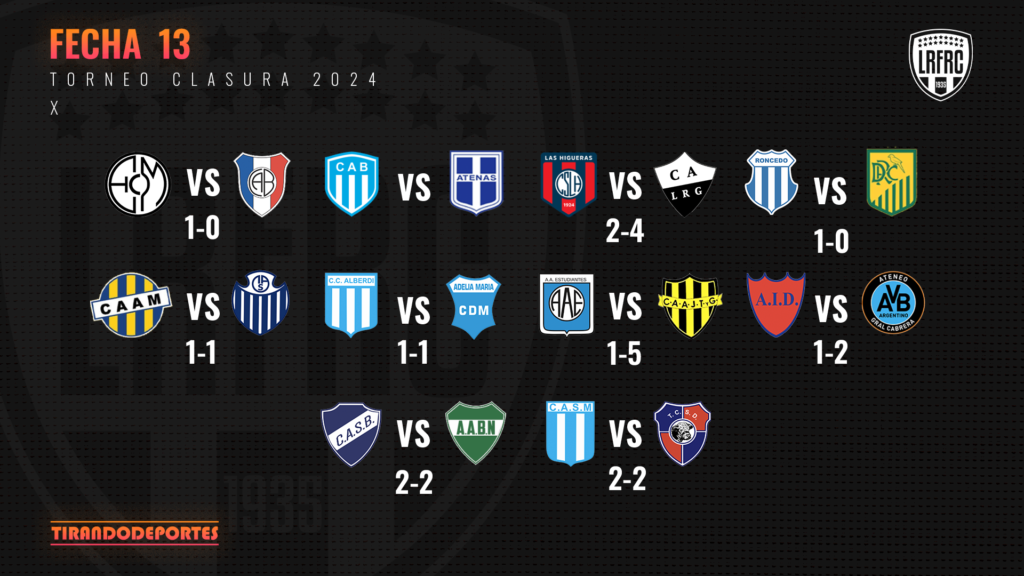 A falta de 6 fechas para que finalice el torneo, la tabla de los primeros puestos se empieza a mover semana a semana. La primera posición es para Acción Juvenil que ganó categóricamente 5-1 a Estudiantes y se recupera del empate contra Belgrano de Moldes. Por otro lado, Toro debía sumar de a 3 para seguir afianzando pero San Martín le cambió los planes. El partido terminó en empate 2-2.
