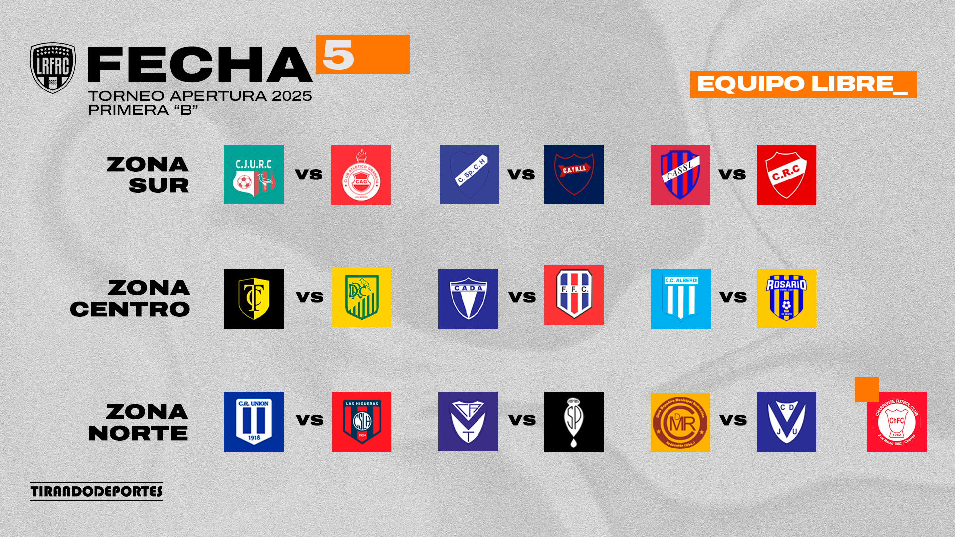 Se pone en marcha la quinta fecha del Torneo Apertura de Primera B, una jornada que tendrá actividad en las tres zonas y varios cruces que pueden empezar a perfilar la tabla de posiciones.