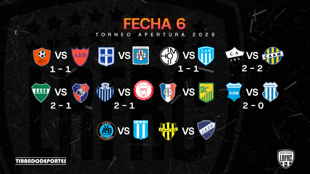 Este fin de semana se dio rodaje a la sexta fecha del Torneo Apertura en La Liga Regional de Río Cuarto, que trajo más empates que triunfos.
