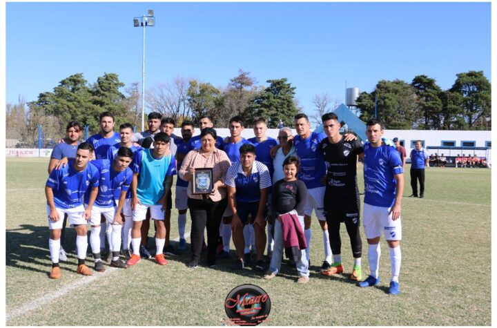 En el marco de la cuarta fecha, los jugadores de Atlético San Basilio y Belgrano de Mackenna posaron para una foto grupal con Álvarez con un mensaje especial.