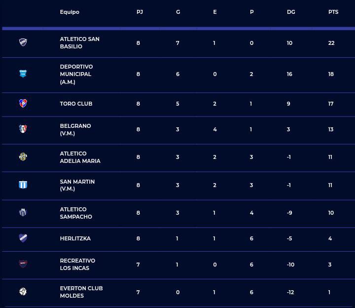 Municipal de Adelia, Toro Club y Atlético San Basilio y por la otra zona Acción Juvenil, Ateneo Vecinos son los equipos con posibilidades en este momento de poder clasificar a la próxima zona.
