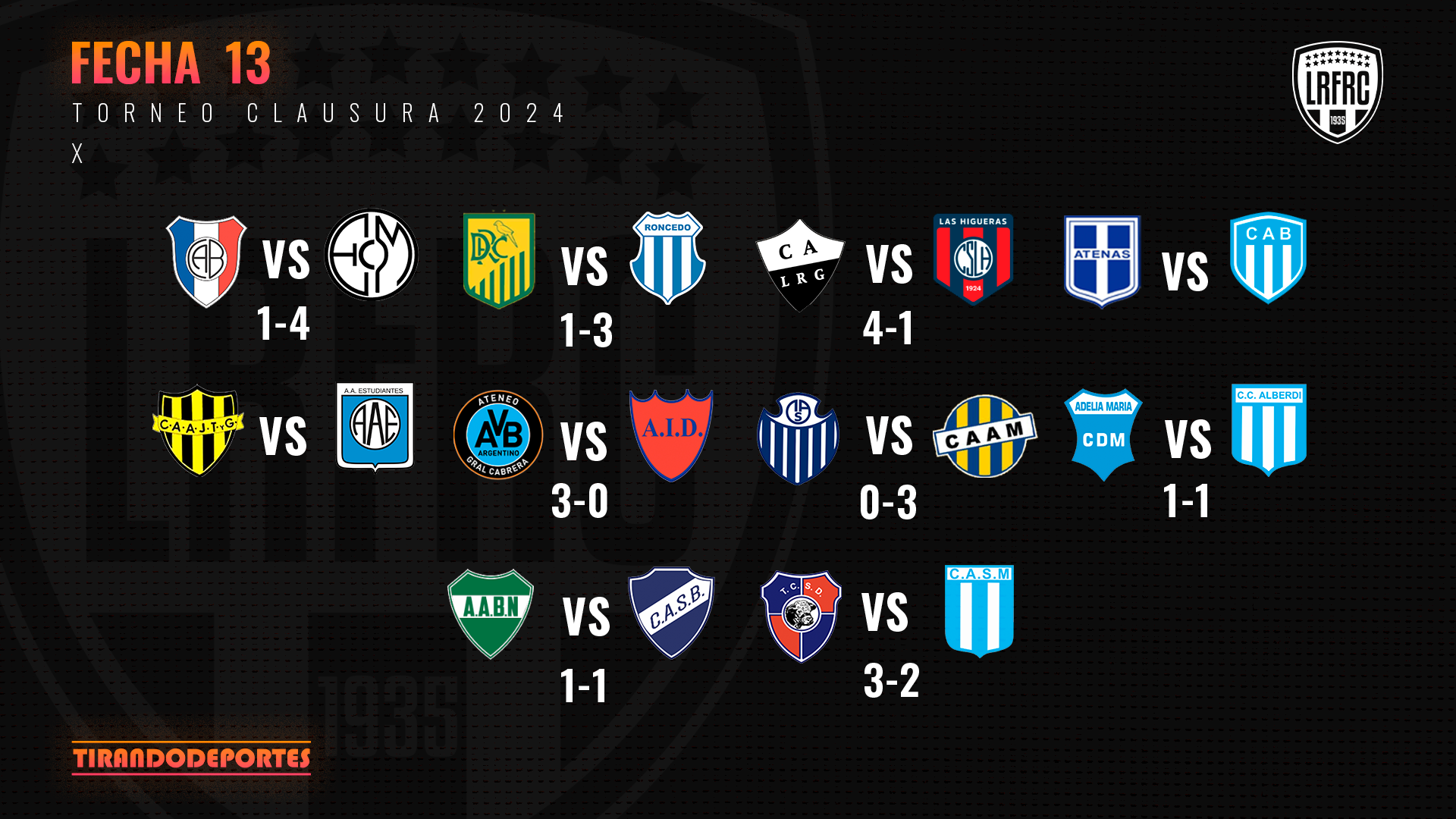 Este fin de semana se desarrolló una nueva fecha en la Liga Regional de Río Cuarto, donde los de abajo no sumaron y se complican con su permanencia en primera.