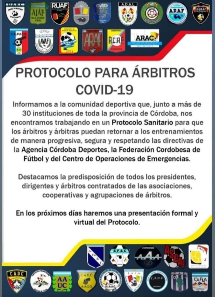 En estas ultimas horas se dio a conocer que diferentes instituciones trabajan para presentar un protocolo sanitario para que árbitras y árbitros puedan volver a los entrenamientos.
