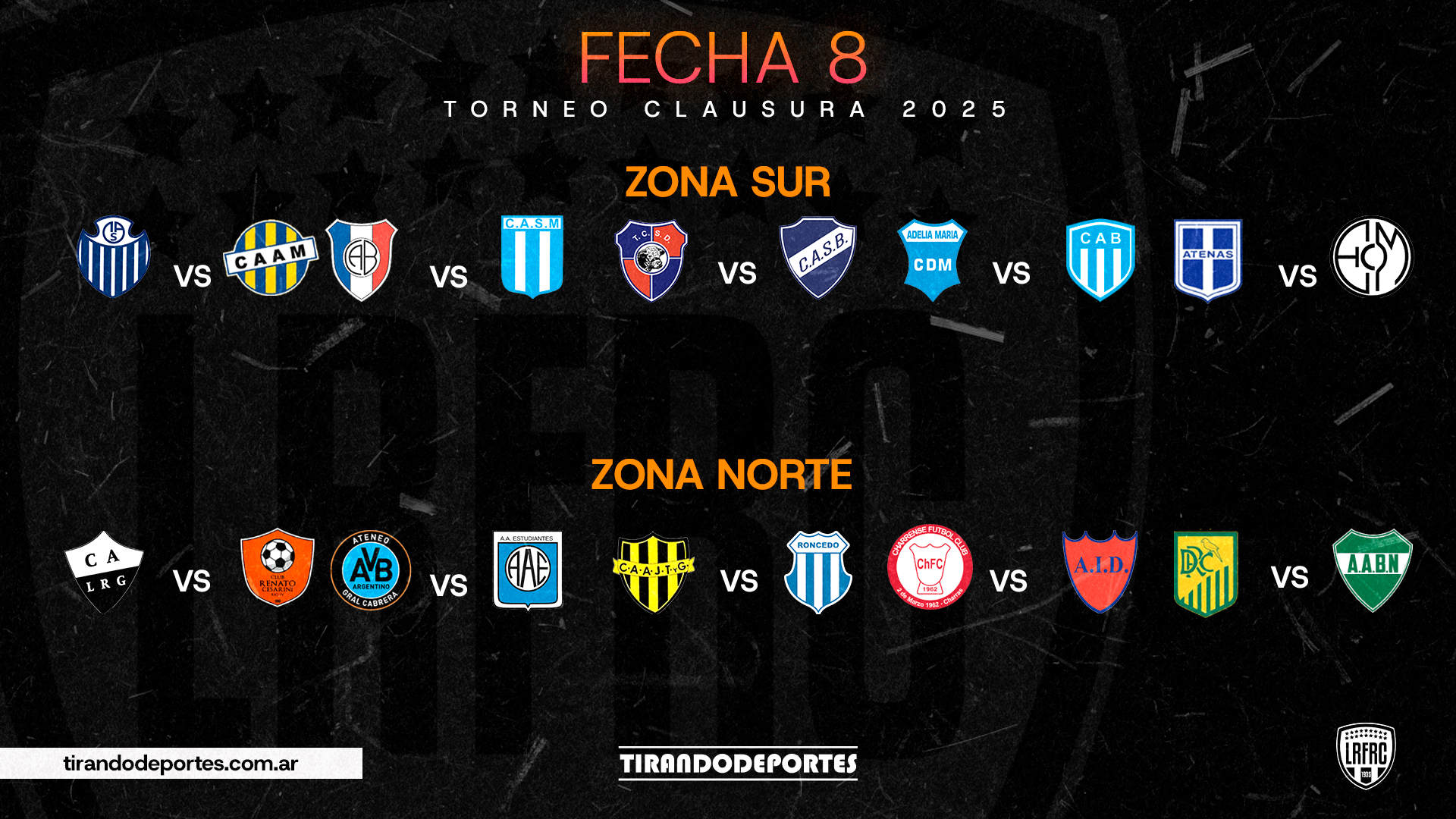 En General Cabrera, Ateneo Vecinos, uno de los escoltas, se medirá con Estudiantes, que busca recuperar terreno en el torneo. Deportivo recibirá en el Fabián Cuchetti a Banda Norte en un clásico barrial cargado de necesidad de puntos. Por su parte, Charrense FC será local ante Independiente Dolores, choque clave pensando en los promedios.