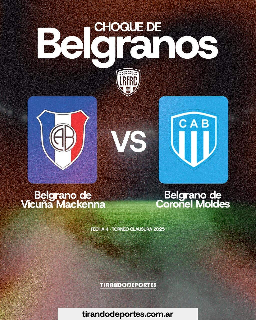 Este fin de semana, la fecha 4 del Torneo Clausura de la Zona Sur de la Liga Regional ofrece un cruce con sabor especial, se enfrentan los dos Belgranos de la competencia. El de Vicuña Mackenna será local y recibirá en su cancha a su homónimo de Coronel Moldes. La última vez que se vieron las caras fue en el Apertura y terminaron igualando sin goles, curiosamente también en el estadio del “tricolor” mackenense.