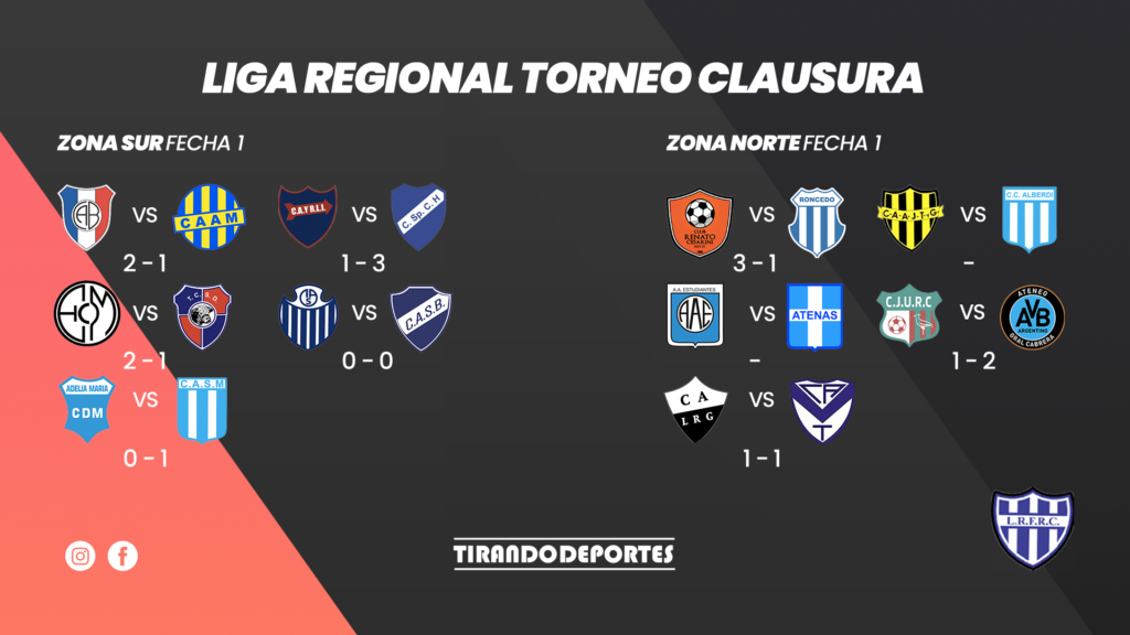 Teniendo en cuenta las zonas, hubo dos equipos que comenzaron ganando en la «Zona Norte», ellos son Renato Cesarini y Ateneo Vecinos (le ganaron a Roncedo y Juventud Unida respectivamente), Riveros y Talleres de Acequias empataron y los cuatro equipos restantes, son los que adeudan aún su partido.