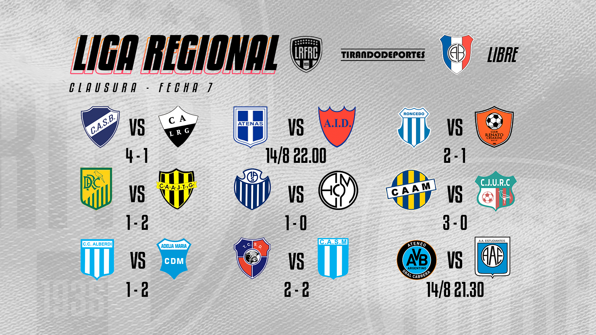 Ateneo Vecinos y Estudiantes en General Cabrera; y Atenas- Independiente Dolores son los enfrentamientos que tendrán el cierre del telón de la fecha.