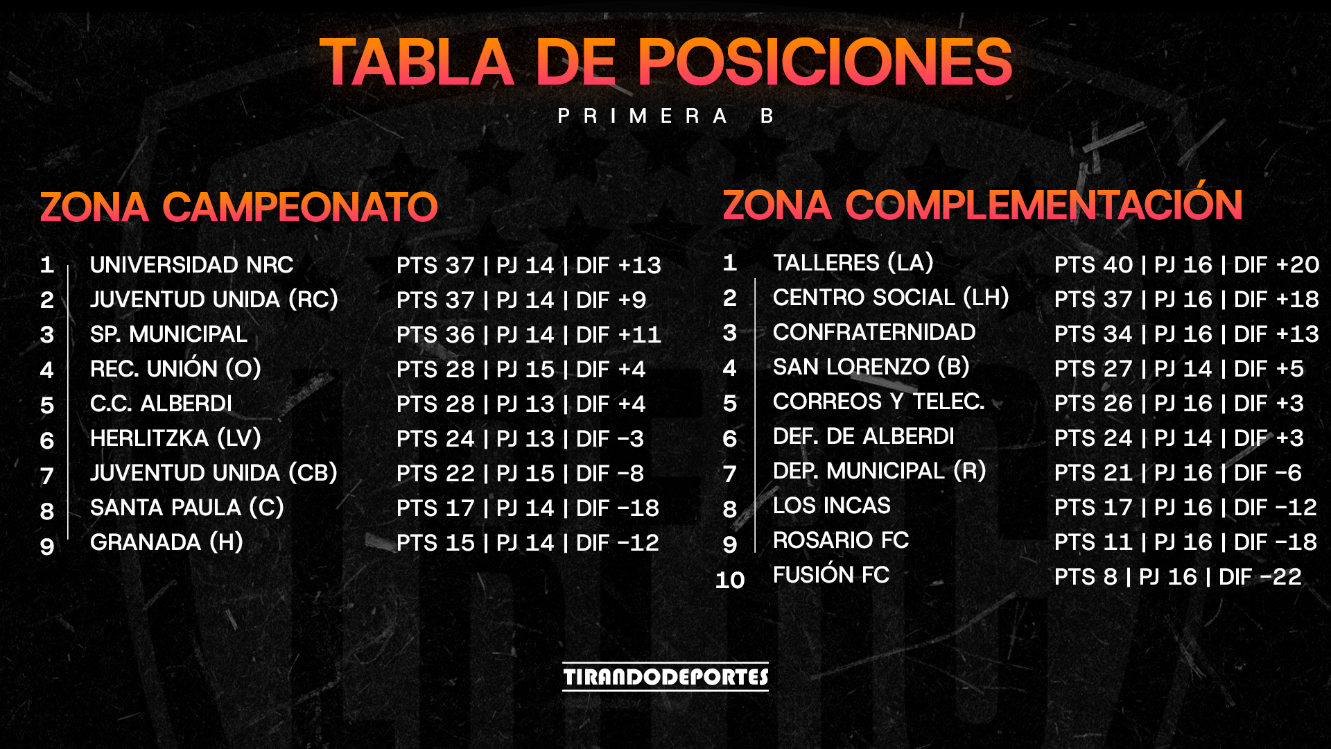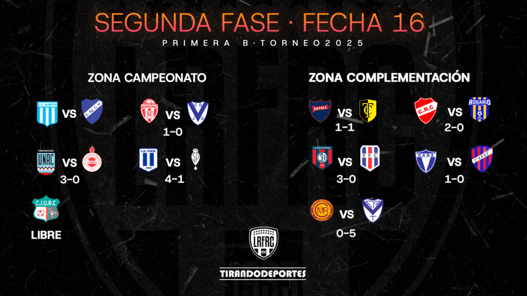 La Fecha 16 dejó más dudas que certezas en la parte alta y algunos golpes duros en el fondo. Universidad NRC y Juventud Unida de Río Cuarto continúan mano a mano en lo más alto de la Zona Campeonato, mientras que Talleres de Las Acequias sigue firme en la Zona Complementación.