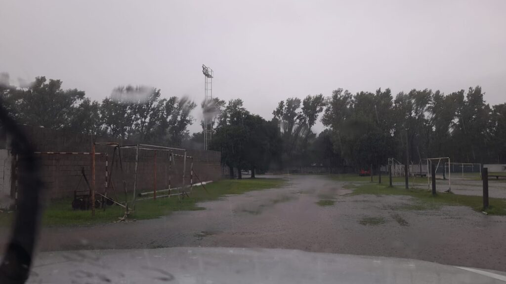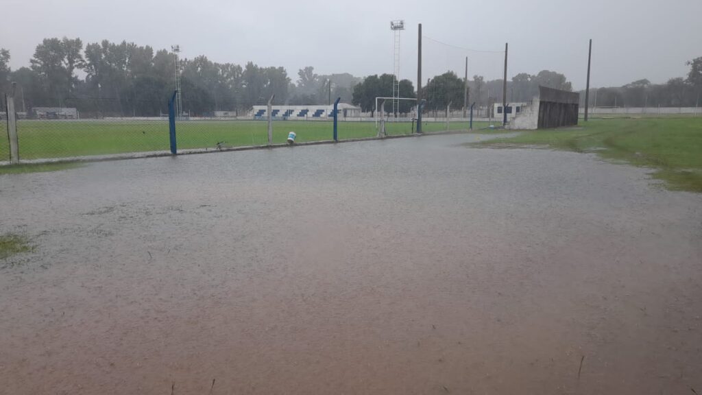 Atlético Sampacho vió su estadio con una capa de agua sobre su césped y la preocupación de que el inundamiento drene para que la calidad del campo de juego este de la mejor manera tras este acontecimiento, comienza a crecer.