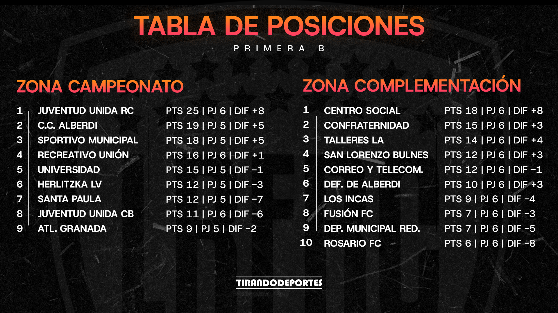 Este domingo se disputó la sexta fecha de la segunda fase del Torneo Juan Alberto López de la Primera B. Tanto Juventud Unida de Río Cuarto, líder en la Zona Campeonato como Centro Social de Las Higueras puntero en la Zona Complementación ganaron sus respectivos encuentros y se alejan de sus perseguidores.