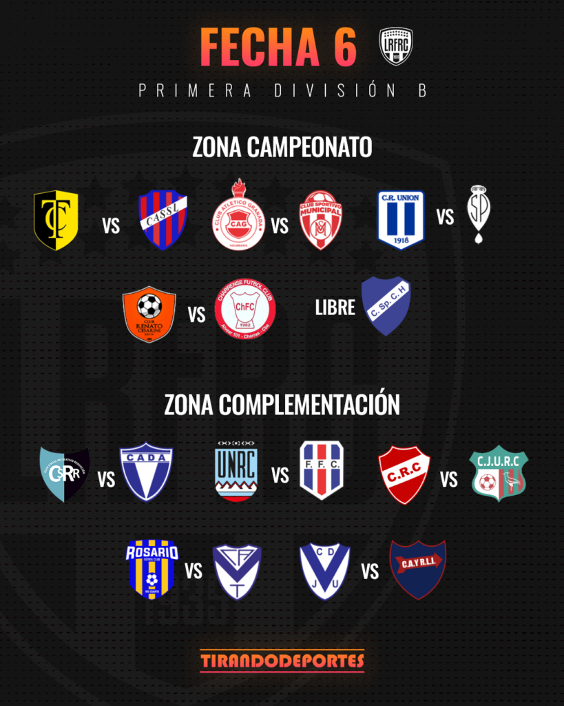 Con estos partidos, se completa la fecha 6: Social Recreativo (R) – Def. de Alberdi, Universidad NRC – Fusión FC y Rosario FC – Talleres (LA).