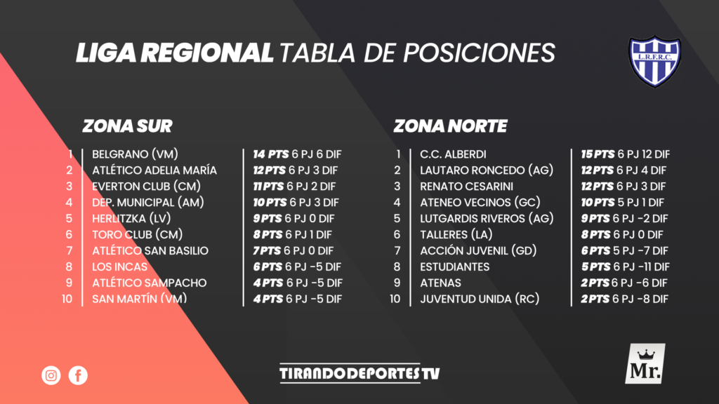 Belgrano de Mackenna no pudo sacar tantos puntos en su empate contra San Martín y el clásico ganado por Atlético Adelia María hizo que este último pudiera acercarse aún más al líder (dos puntos). Desde el lado de la zona Norte, Alberdi hizo lo suyo y venció 2-1 a Juventud Unida y tras la derrota de Roncedo contra Riveros, es el nuevo puntero de la Zona.