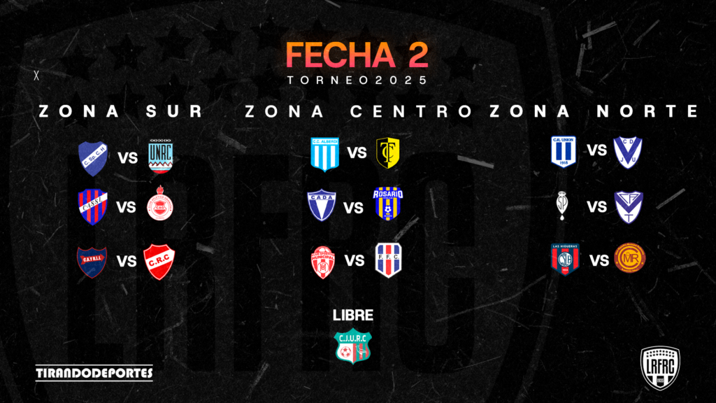 Estamos en vísperas de la segunda jornada de la segunda división del fútbol regional, donde siete de los 19 equipos lograron sumar de a tres. Tenemos dos líderes en la Zona Norte (Juventud Unida de Baigorria y Unión), dos en la Zona Centro (Juventud Unida RC y Fusión) y tres en la Sur (Universidad, Herlitzka e Incas).