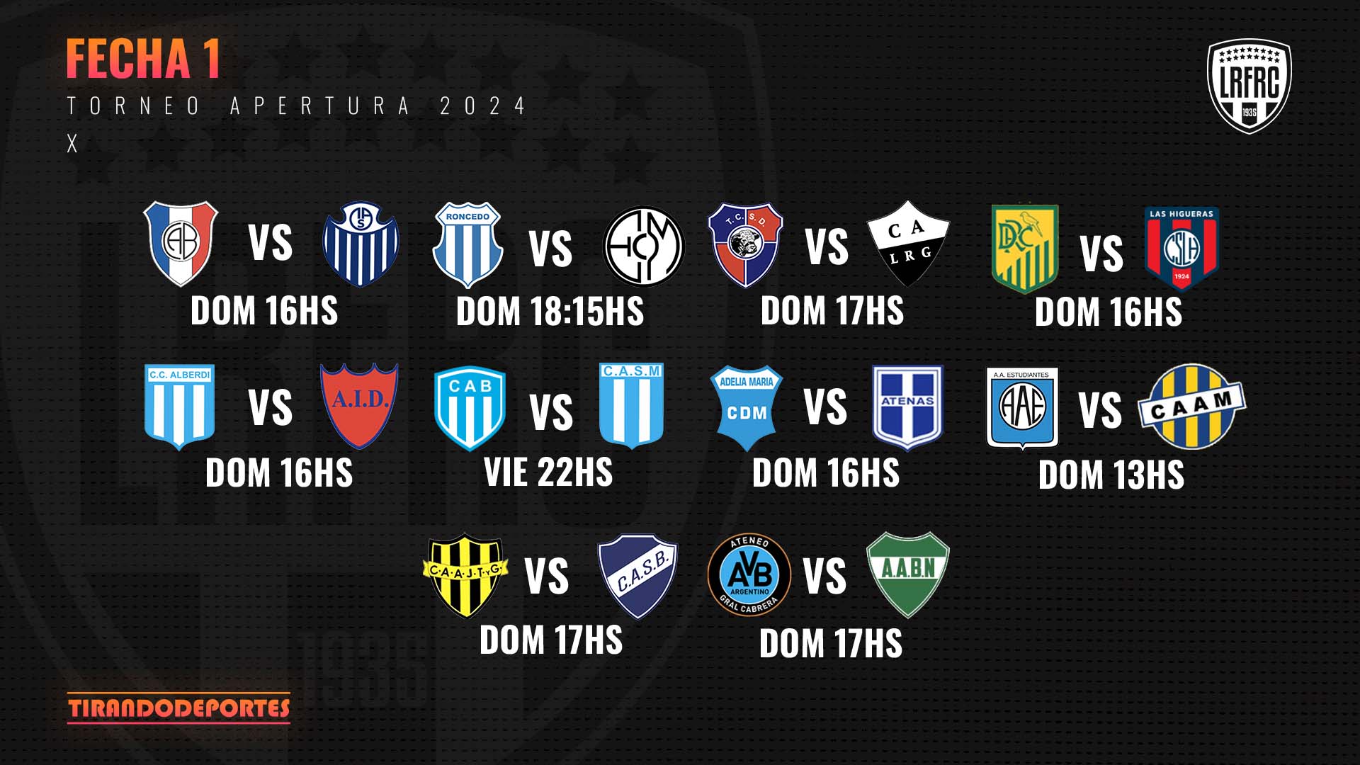 Con un partido en el corriente Viernes, en el que Belgrano de Coronel Moldes debutará en Primera División contra San Martín de Mackenna, el resto de los equipos tendrán acción el día Domingo.