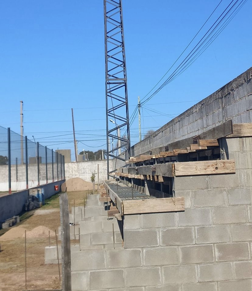 «En este momento se construyen los primeros 12 metros de tribuna visitante de la cancha de 11 del predio Blas «Pachacho» Mariscotti. En la continuidad, los segundos 12 metros de la tribuna de cemento para la parcialidad local.