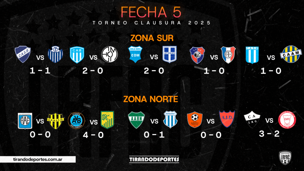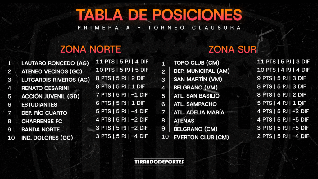 Este domingo concluyó la quinta fecha de este atrapante Torneo Clausura que nos dejó dos líderes en soledad: Lautaro Roncedo en la Zona Norte y Toro Club en la Sur.
