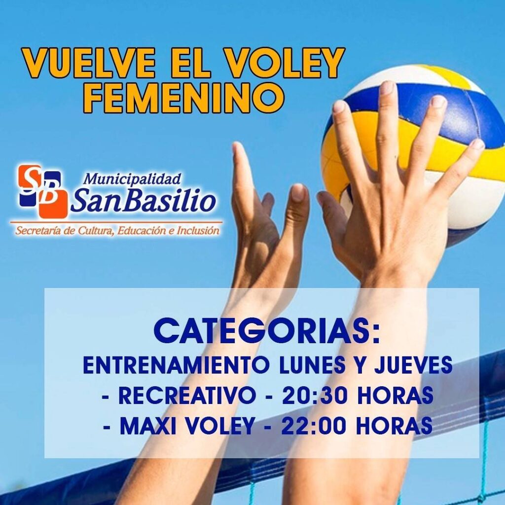 TD 9 de septiembre de 2021 Para que lo tengas en cuenta. Para que lo tengas en cuenta. Desde la Municipalidad de San Basilio informaron que comenzaran los entrenamientos para las categorías recreativo y Maxi vóley. Sumate a este deporte y disfrutá del vóley: TE PUEDE INTERESAR:San Martín tiene aspiraciones a mejorar su presenteEn Gigena, Roncedo sumó su primer triunfoSan Martín y Everton mandan en el campeonatoCórdoba Pista vuelve al Cabalén con entrada general sin cargo Post navigation Anterior Objetivo cumplido para TelloSiguiente Con lágrimas de campeón Más Info IMPORTANTE MÁS DISCIPLINAS NACIONALES Polideportivo Luisina Giovannini se afirma y da otro salto en su carrera 17 de abril de 2026 TD DESTACADO FÚTBOL Regionales Entre tribunas y recuerdos: la historia del estadio de Roncedo 17 de abril de 2026 TD IMPORTANTE MÁS DISCIPLINAS Polideportivo El ciclismo nacional desembarca en Río Cuarto con el Argentino de Ruta 16 de abril de 2026 TD
