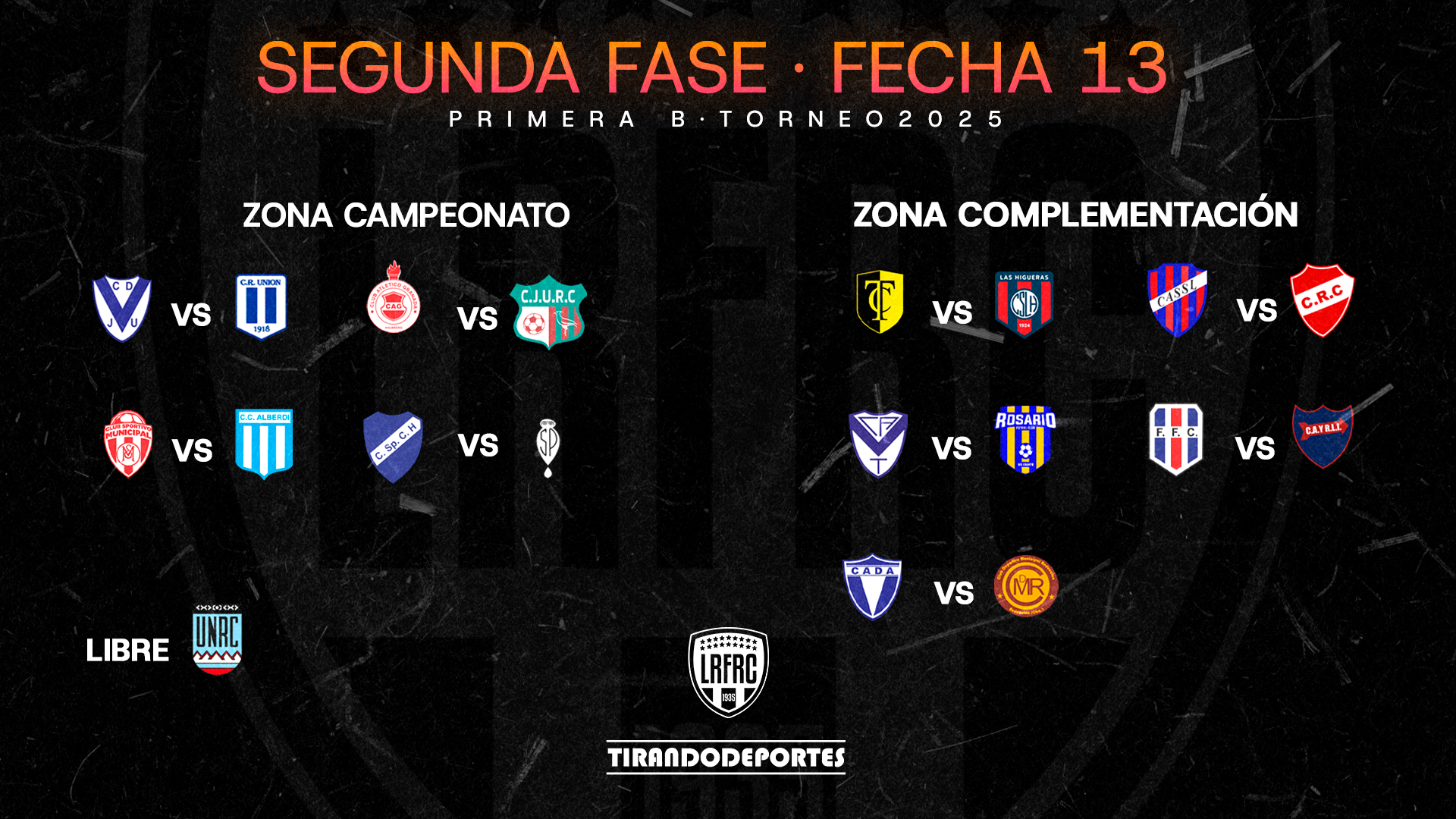 Comienza la décimotercera fecha de la segunda división del Fútbol Regional con algunos partidos claves pensando en los boletos de clasificación de la Zona Campeonato.