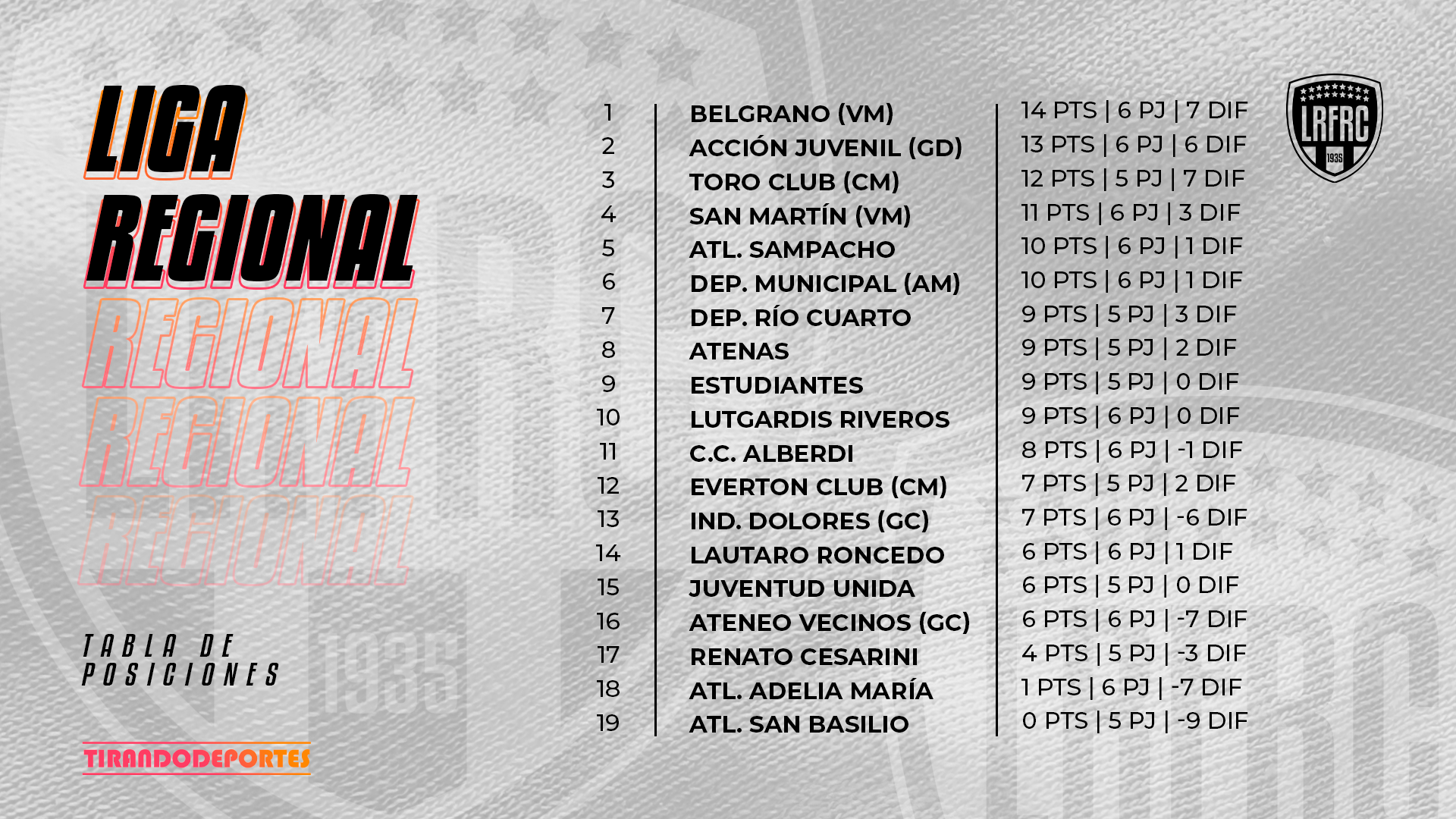 La fecha finalizará el día Martes cuando se dispute el clásico entre Estudiantes y Atenas en el estadio «Antonio Candini».