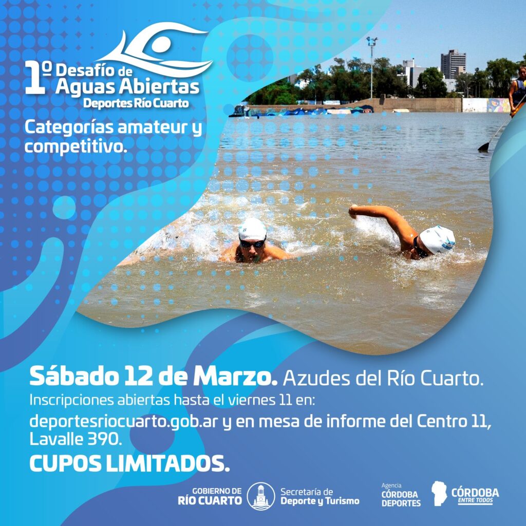 Las inscripciones están abiertas https://deportesriocuarto.gob.ar/1-desafio-de-aguas-abiertas/ y también de modo presencial en mesa de informes del Centro 11 (Lavalle 390) hasta el viernes, en el horario de 6:30 a 21.