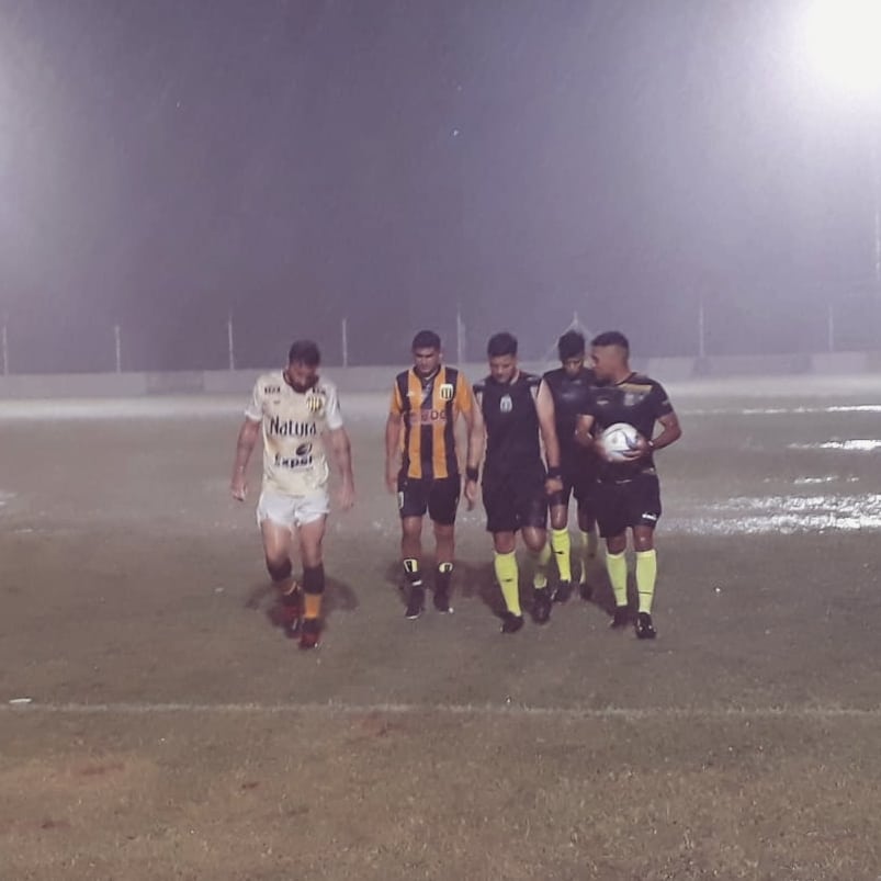 Pero en la localidad de Laborde la situacion parecia «jugable», y entonces la orden fue disputar el partido. Se pudo jugar solamente el primer tiempo en el cual Brian Parada logró convertir para Acción Juvenil y luego de ello, la lluvia llego a Laborde y fue tal la intensidad del diluvio que los charcos en la cancha invadían todo el campo de juego y hacia nula la trayectoria de la pelota, por lo que se estableció posponer el partido para hoy.