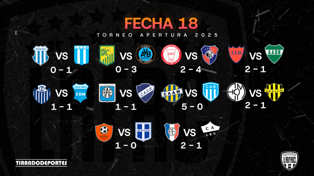 Municipal empató con Atlético Sampacho. Everton le ganó 2-1 en Moldes a Acción Juvenil. Toro se trajo tres puntos de Charras, fue victoria por 4-2. Atlético Adelia María goleó a Belgrano de Moldes. El «Tricolor» de Mackenna venció a Lutgardis que se fue pinchando.