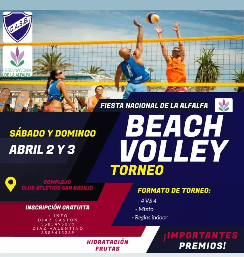 En lo deportivo se destaca el Beach Voley, que se llevará a cabo los días 2 y 3 Abril. La modalidad será 4 vs 4, mixto y será regulado bajo el reglamento indoor. Dicho torneo se hará en el complejo de Atlético San Basilio y habrá importantes premios para los ganadores.