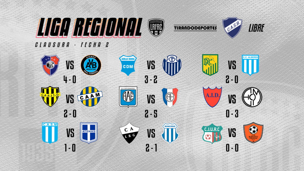 Esta segunda cita de la Liga Regional tuvo resultados que van destacando a equipos que darán pelea en este campeonato. Solo un equipo mantiene su racha invicta de dos ganados hasta el momento, y es Acción Juvenil.